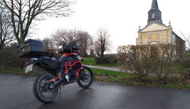 Le départ est à Nortkerque, mais tu peux le prendre à n'importe quel endroit, dès que tu télécharge le fichier GPX ci-dessous. Il y a bien quelques petites routes champêtres, mais les Kawa 1400 et une SV650 de Stéphane et Gaëlle sont passées un jour de pluie !